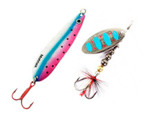 • Блешні: Ці приманки мають металеве тіло, яке обертається або коливається, створюючи світлові та звукові ефекти. Блешні часто використовуються для лову хижих видів риби, таких як щука або окунь.
