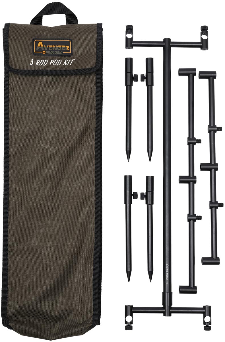 Всі деталі роду виконані з міцного і легкого алюмінієвого сплаву з чорним анодуванням, завдяки чому виріб досить міцний, довговічний і може використовуватися за будь-яких погодних умов. Модельний ряд Prologic Avenger Rod Pod Kits & Carrycase включає варіанти на 2 та 3 вудилища.
