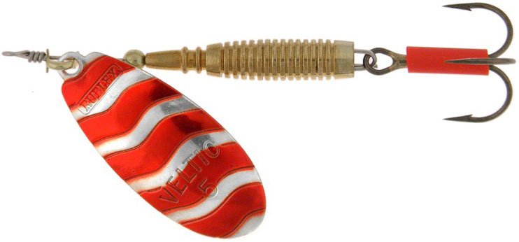 Лепесток блесны Veltic легко узнать с первого взгляда, он имеет форму слегка удлиненного яйца. На внешней стороне лепестка вытеснены узоры в виде волны, которые предают дополнительный эффект при игре даже на неокрашенных моделях. Блесна имеет очень выразительную игру и не сбивается. Сердечник Rublex Veltic имеет смещенный центр тяжести, который находится в его нижней части. Благодаря этому увеличивается дальность заброса и не только… При медленной проводке блесны, она становится практически вертикально дну и идет на грани сбоя. В момент касания лепестка дна, игра сбивается – в этот момент часто происходит поклевка. Как многие модели Rublex, Veltic имеет систему быстрой замены крючка "en trombone". Модель эффективна для использования в глубоких местах, а так же в реках со средним и медленным течением. Блесна Велтик предоставлена в шести размерах - от 1 до 6 и рассчитана на ловлю средней и крупной щуки, судака, а также крупного окуня как на быстром течении, так и в спокойной воде.