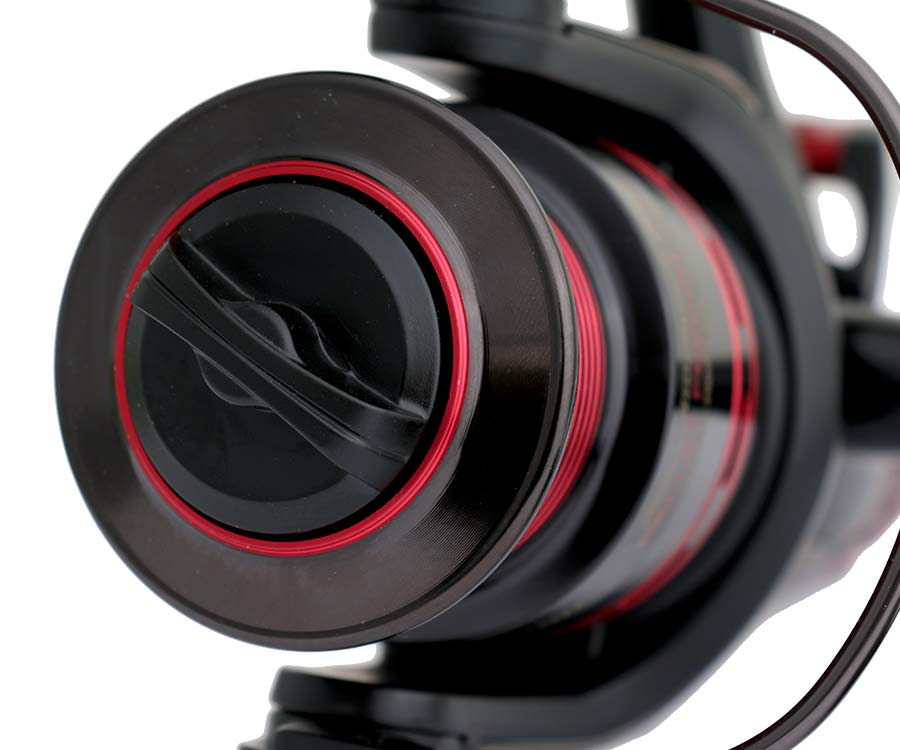 Поверхность шпули «опоясана» полосой с мелкой насечкой, которая препятствует проворачиванию намотанной лески или шнура под большими нагрузками.