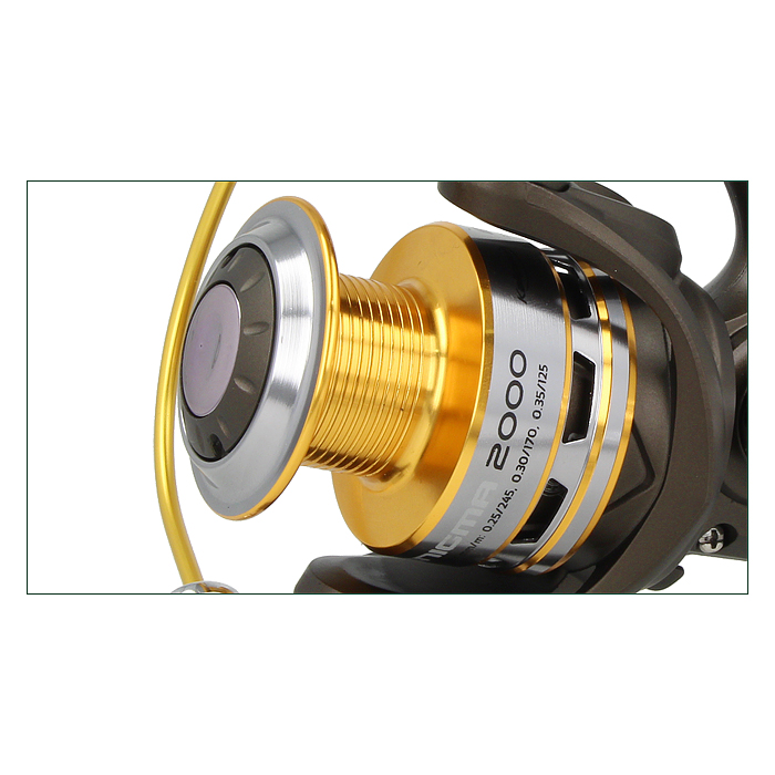 - Главная пара из алюминия и бронзы со сложной геометрией зубьев, которая способствует долговечности и мягкому ходу катушки.