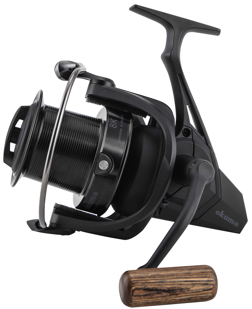 Okuma 8K FD - это мощная и надежная катушка для ловли карпа подойдет для использования не только на рабочих удилищах, но и на сподовох и маркерных. Катушка оснащена новым ротором CFR, благодаря которому увеличивается поток воздуха и минимизируется проникновение воды на корпус. Катушка Okuma 8K FD имеет водонепроницаемую и быструю многодисковую войлочную тормозную систему, алюминиевую шпулю типа "Long Cast" для дальних забросов, прецизионную латунную шестерню, 6 шарикоподшипников из нержавеющей стали, а также алюминиевую рукоять с удобным деревянным Т-образным кнобом и мощную алюминиевую дужку лесоукладывателя. Корпус катушки изготовлен из коррозиестойкого графита.