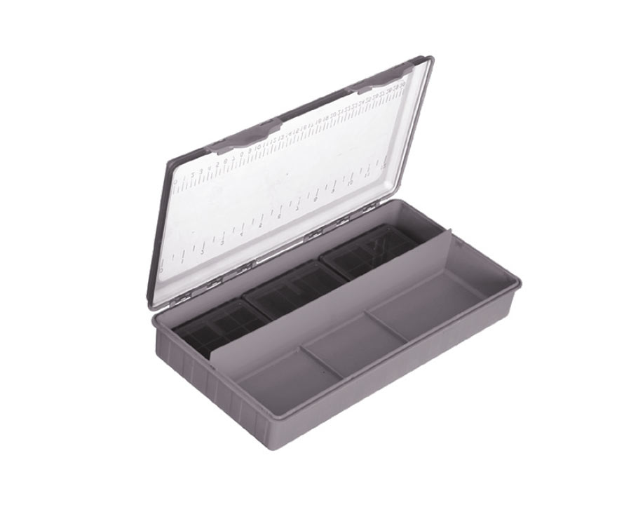 Для удобства изготовления поводков и оснасток на прозрачную крышку коробки нанесены сантиметровая и дюймовая шкалы.