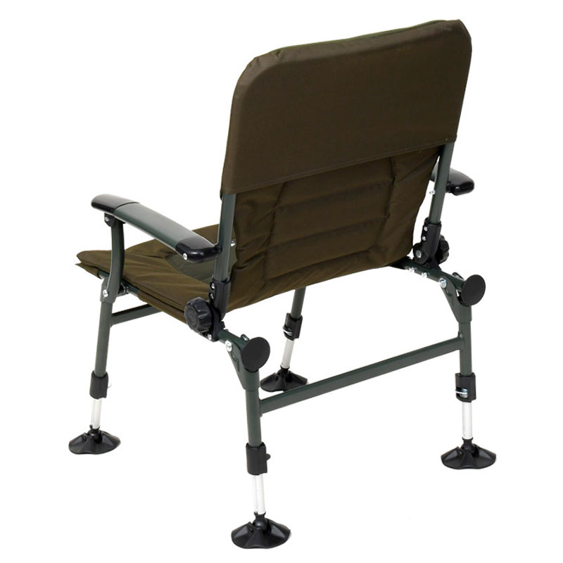 Кресло можно без проблем разместить на неровной и наклонной поверхности благодаря четырем телескопическим ножкам с надежными и легкими в обращении фиксаторами. Ножки оснащены увеличенными шарнирными пятками, которые предотвращают проваливание кресла в мягкий грунт и обеспечивают дополнительную устойчивость на наклонной поверхности. В сложенном состоянии кресло Carp Pro Torus компактно и удобно для перевозки.