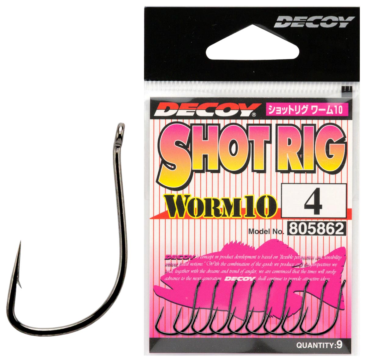 Крючок Decoy Worm10 Shot Rig – принадлежит к серии крючков, которые предназначены для оснащения небольших силиконовых приманок, применяемых в ультралайтовой и лайтовой ловли хищной рыбы.