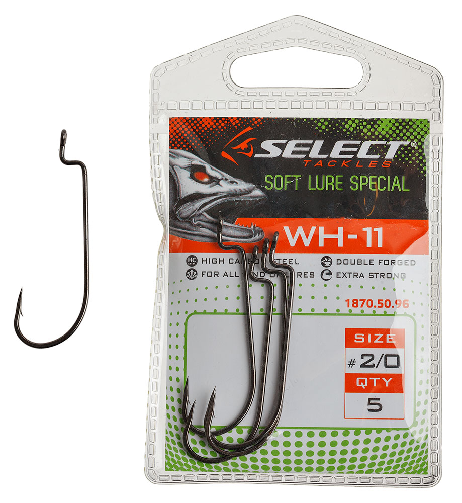 Крючок Select WH-11 предназначен для оснащения силиконовых приманок с тонким и узким телом, таких как черви. Неглубокий изгиб оффсетника равномерно располагается вдоль тела силикона и в любой момент, после поклёвки рыбы, моментально высвобождает жало для надёжной подсечки. Для его производства использована прочная высокоуглеродистая сталь с дополнительно коваными гранями в месте изгиба. Модельный ряд крючков Select WH-11 позволит оснастить приманки различных размеров от класса лайт до экстра-хэви.