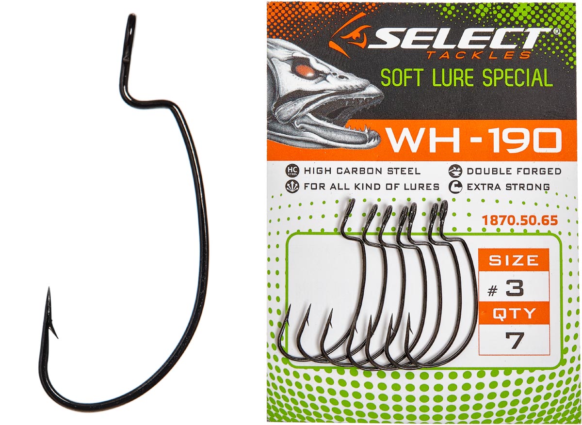 Крючок Select WH-190 – оффсетник универсальной формы, одинаково хорошо подходящей для различных силиконовых приманок. Благодаря использованию проволоки уменьшенного диаметра, он позволяет приманке более естественно вести себя под водой, легче просекает рыбу и при повышенной нагрузке может разогнуться, чем спасёт всю снасть в целом. Хотя при этом его прочности вполне достаточно для надёжного удержания крупной рыбы. Крючки выполнены из высокоуглеродистой стали с использованием лазерной заточки жала, что делает их острыми и прочными. Особенностью данной модели является увеличенный диаметр ушка, благодаря чему оффсет свободно двигается на грузиле, независимо от толщины используемой проволоки, а также может фиксироваться через заводное кольцо.