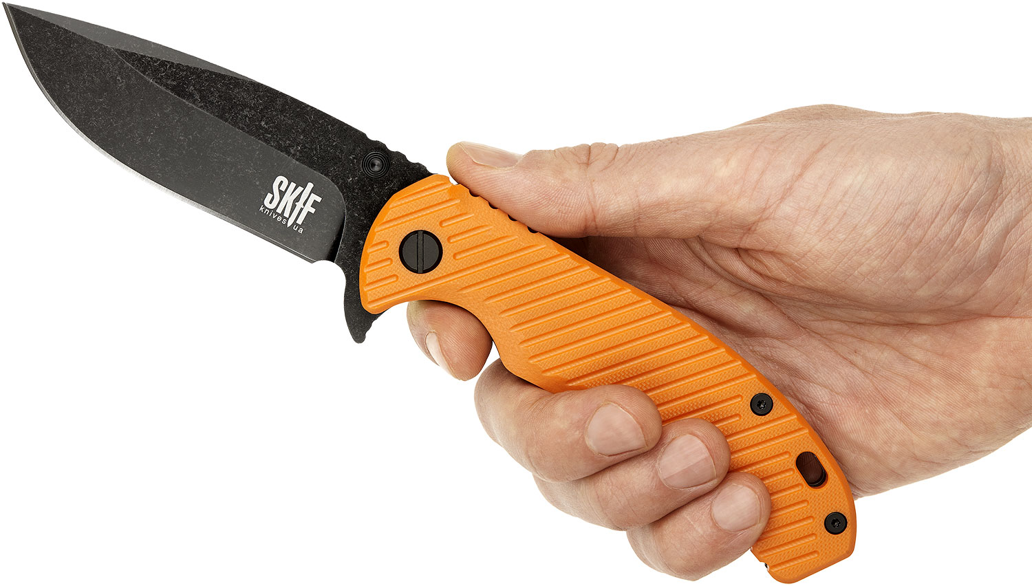 Руків'я, виконане з матеріалу G10, відмінно лежить навіть у вологій руці або рукавичках. Присутня кліпса, яку при необхідності можна зняти та користуватись темляком, під який передбачено отвір.