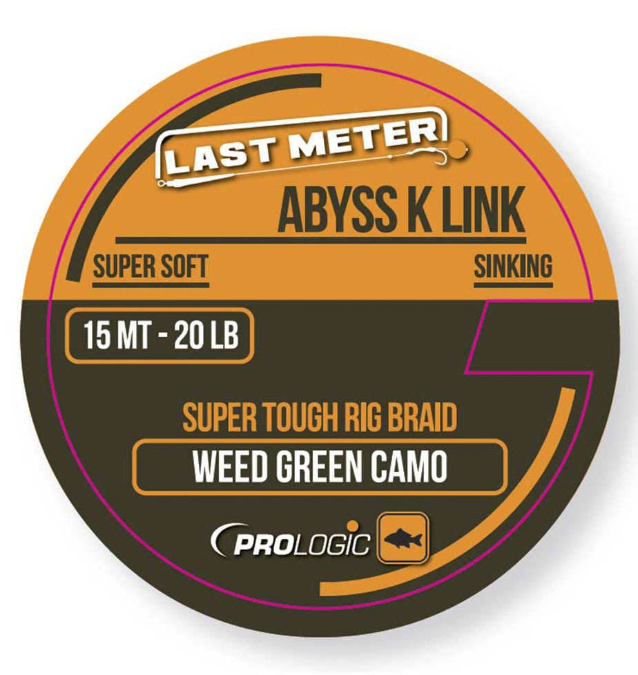 Поводковый материал Prologic Abyss K Link – специфическая нить из волокон PTFE (политетрафторэтилен, тефлон) и кевларовых волокон. Главными особенностями этого материала являются высокая мягкость и высочайшие показатели прочности. Камуфляжная раскраска нити эффективно маскирует ее, уменьшая вероятность того, что осторожная рыба заметит ее. Рекомендуется использовать классический узел Гринера. Модельный ряд Prologic Abyss K Link включает варианты с разрывными нагрузками 20, 30 и 40 фунтов.