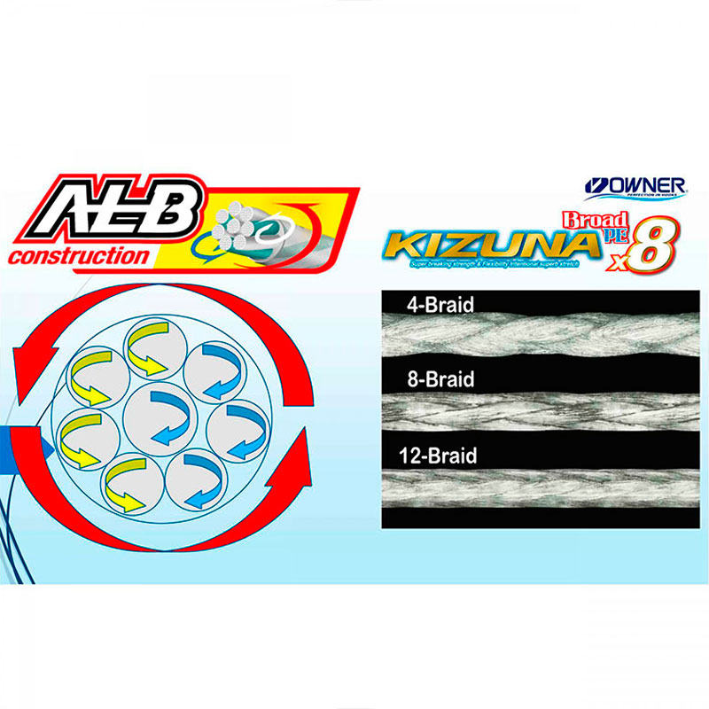 Надзвичайно міцні мікроволокна Izanas забезпечили шнуру Owner Kizuna Broad PE x8 підвищену стійкість до стирання і деформації.