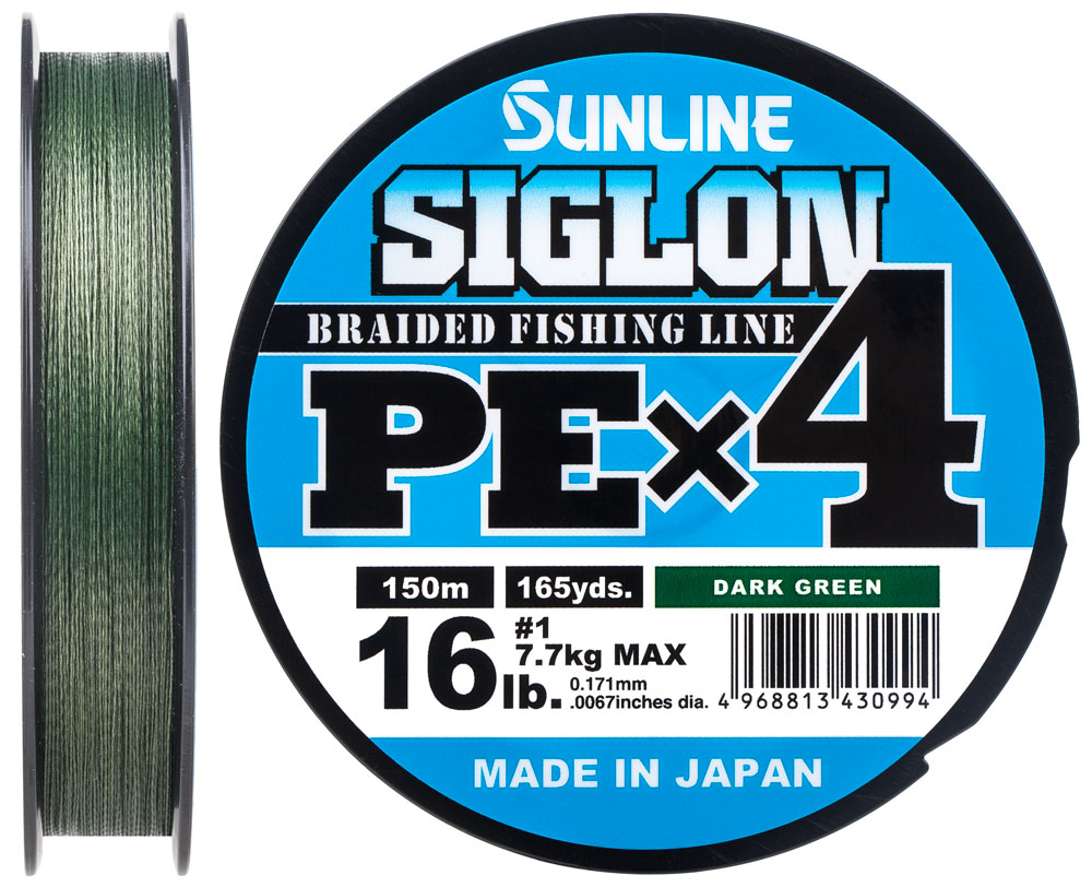 Шнур Sunline Siglon PE х4 300m (темн-зел.) #1.0/0.171mm 16lb/7.7kg - плетенка от японских производителей.