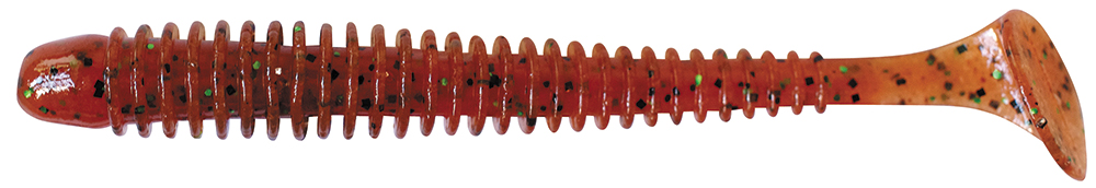 Пятка виброхвоста очень подвижная и включается в игру при самой медленной проводке. Ребристость на теле приманки создает дополнительные возмущения в водной среде, привлекающие хищника с большого расстояния.
