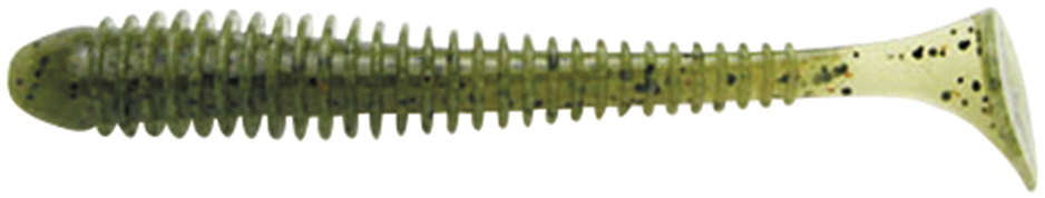 Пятка виброхвоста очень подвижная и включается в игру при самой медленной проводке. Ребристость на теле приманки создает дополнительные возмущения в водной среде, привлекающие хищника с большого расстояния.