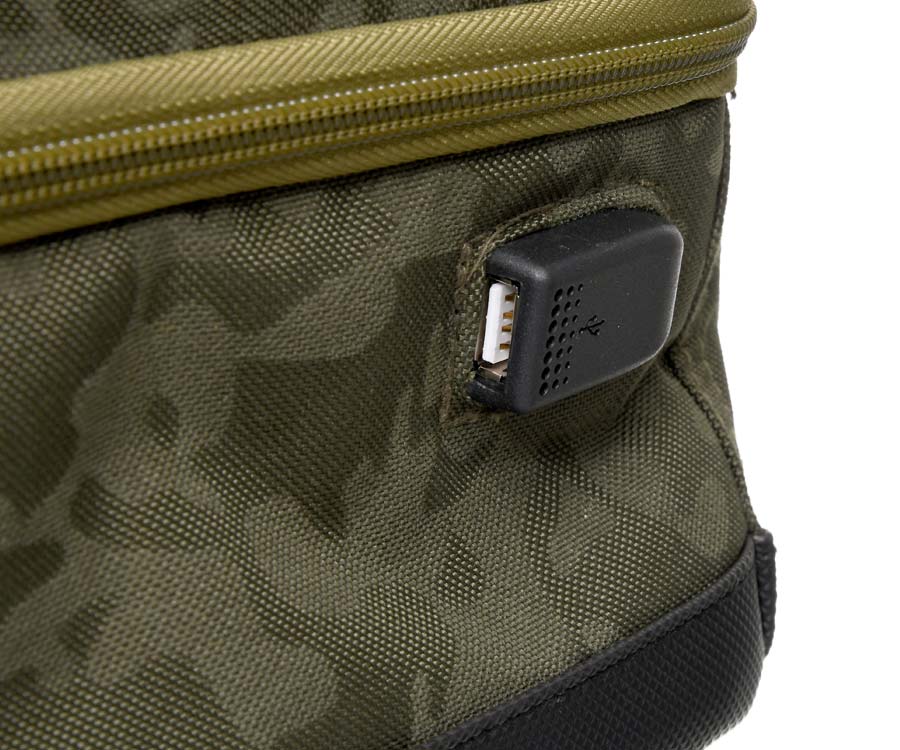 Сбоку кейса выведен наружный разъем USB, подключаемый идущим в комплекте кабелем к Power Bank.