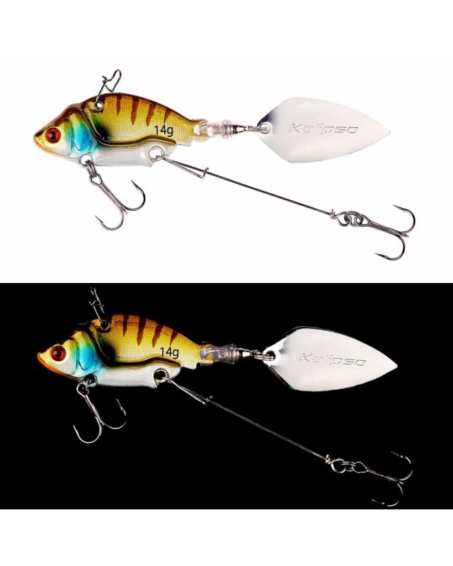 Особенностью тейл-спиннера Kalipso Rifle является наличие тройника, установленного на дополнительном металлическом поводке, что повышает эффективность приманки во время клева хищника.