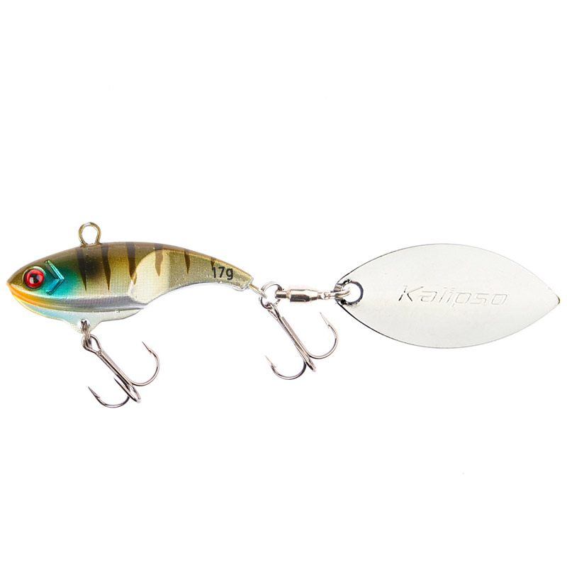 Тело приманки выполнено в стиле "Ратлин", придавая ей дополнительные вибрации как при равномерном ведении, так и в фазе падения. Эта особенность конструкции позволяет использовать тейл-спиннер Kalipso Tyram как с лепестком при забросе, так и для вертикальной ловли с лодки, или со льда.