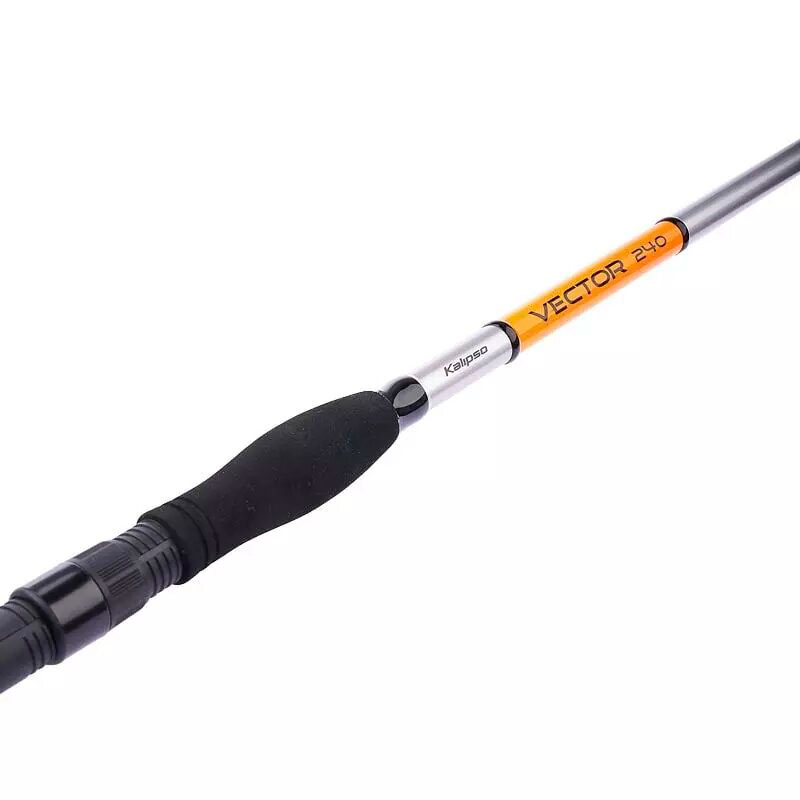 Потрібно відзначити дизайн – бланк виконаний у сріблястому кольорі з помаранчевими вставками. Вудилище спінінгове Kalipso Vector оснащене надійними дволапими кільцями з тонкими вставками Sic. Ручка рознесеного типу з EVA має зручний хват та надійний прогумований упор.