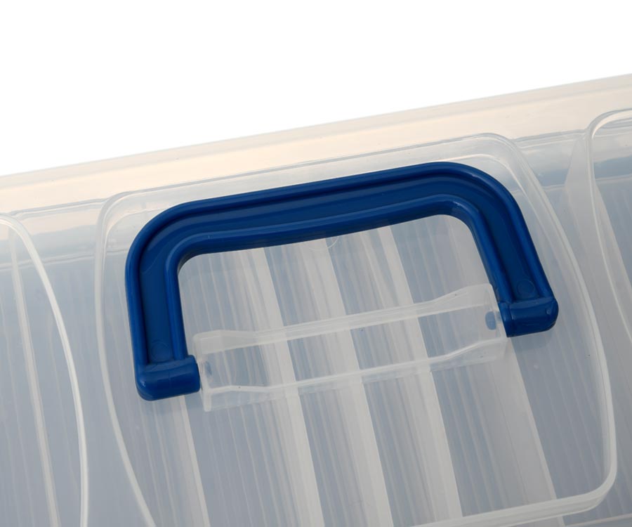 Flagman Tackle Box #29 – вместительный рыболовный ящик с прозрачной крышкой, изготовленный из ударопрочного пластика. Конструкция Tackle Box #29 предусматривает две раскладные полки. Система поддерживающих полки реек обеспечивает прочность конструкции и плотное прилегание полок друг к другу, исключая выпадение содержимого из ячеек во время транспортировки. Концепция фиксированных и съёмных перегородок позволяет оптимально формировать рабочее пространство кейса по своему усмотрению. Основное отделение ящика не имеет перегородок и предназначено для хранения крупных предметов. Рыболовный ящик Flagman Tackle Box #29 отлично подойдёт для хранения и транспортировки снастей, приманок самых разных типов и размеров, а также элементов оснасток и прочих аксессуаров. Имеет удобную складную ручку для переноски. Крышка оборудована надёжными шарнирами и защёлкой.